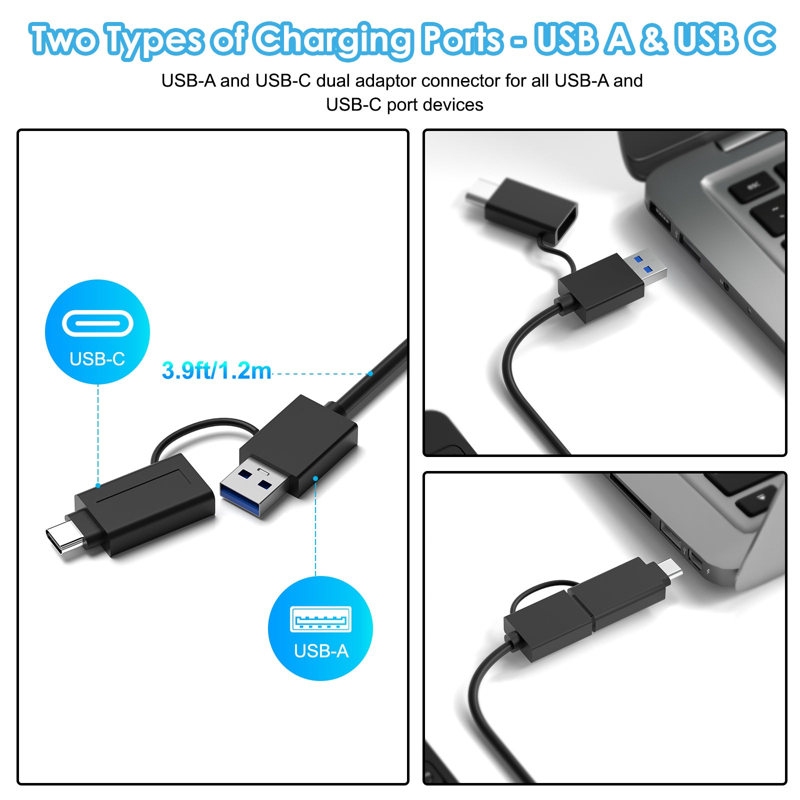 【Powerful Charging Capabilities】2 USB-A Charging Ports (9V/2A), fast-charge USB-A/USB-C compatible devices. 2 USB-C Charging Ports (9V/2A), optimized for USB-C devices, delivering rapid and stable charging. 60W PD Charging Port, provides high-power charging for laptops and other power-hungry devices.