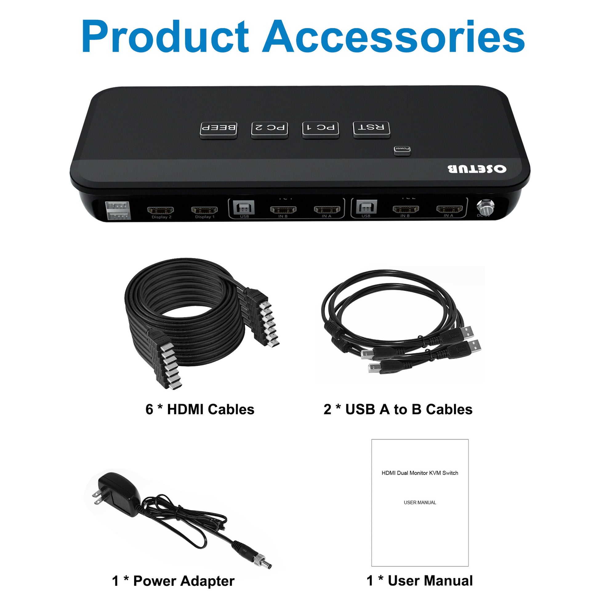 【Package Contents & Warranty】 1 x 4K@60Hz KVM Switch & 2 x 4 in 1 USB C HUB & 6 x HDMI Cables & 2 x USB Type-A to B cables & 1 x Power Adapter & 2 x DVI to HDMI Adapters & 2 x USB-A to Type-C Adapters & 1 x User Manual. Please note that in the premise that the supports dual display or multi-screen display, the extended mode can output two different screens, and the copy mode can output two identical screens; If your computer only supports single display, then this product cannot help you get dual display function. We offer one-year warranty, please contact us if you have any concerns.