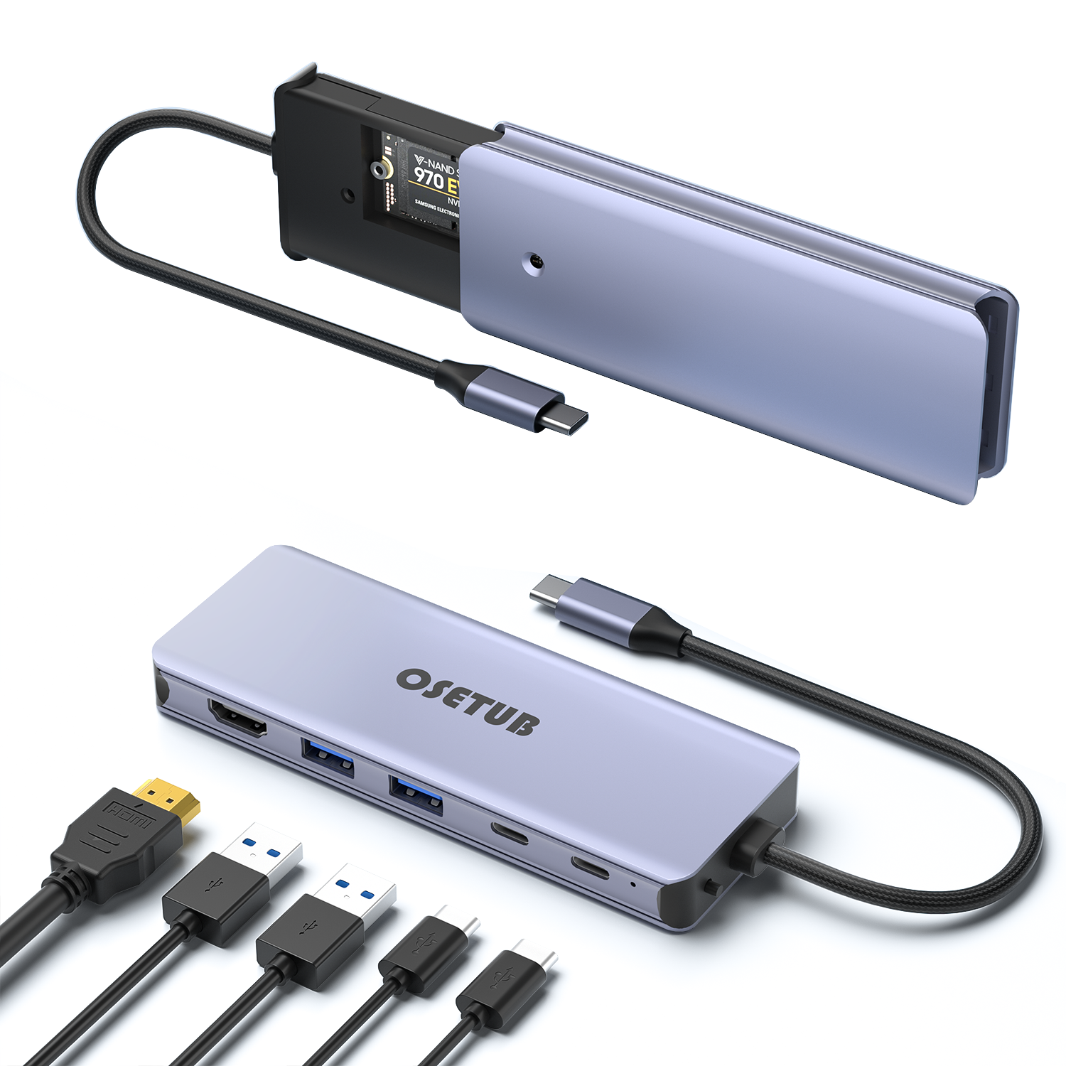 - 【6-in-1 USB-C Hub Combines M.2 NVMe SSD Enclosure】 The intelligent USB C hub adapter included 4K/60Hz HDMI port, 2 * 10Gbps USB 3.1 Gen2 ports, 10 Gbps USB-C DATA,100W PD charging ports. Combines the M.2 NVMe SSD enclosure and multi-functional TYPE-C adapter compatible for MacBook, Type C laptop, Samsung Note10/S10, Huawei P60/Mate60.