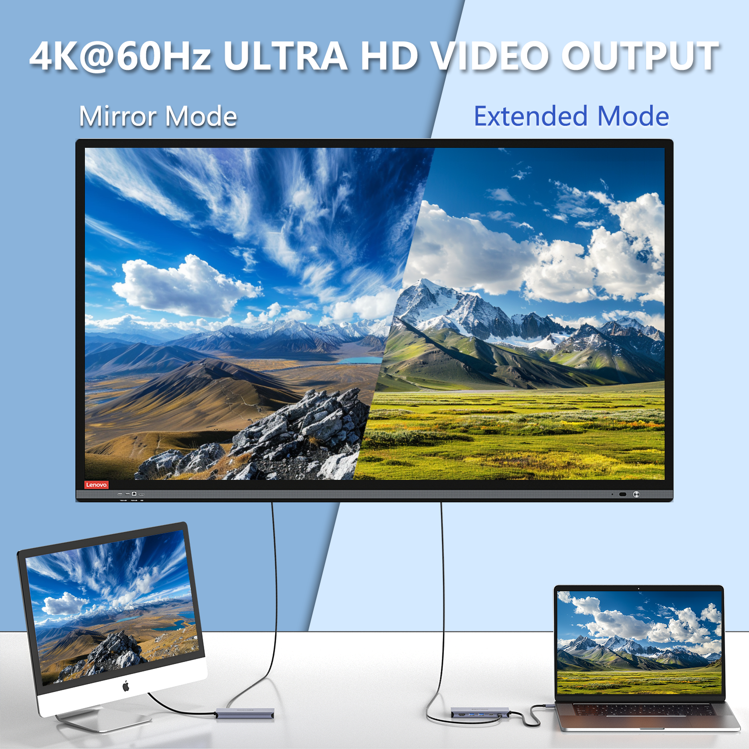 - 【4K@60Hz HDMI & USB 3.1 Gen2 Ports with 10Gbps】Utilizes HDMI 2.0 version, supporting a 4K60Hz refresh rate and a maximum resolution of 3840*2160p, providing a high-quality, exceptionally clear visual experience.(Please make sure the type-c port of your device support video output). Features USB 3.1 Gen2 port up to 10Gbps, 10Gbps high speed USB ports transfer 10x faster than USB 2.0, which allows you to transfer HD movies or files in just seconds.