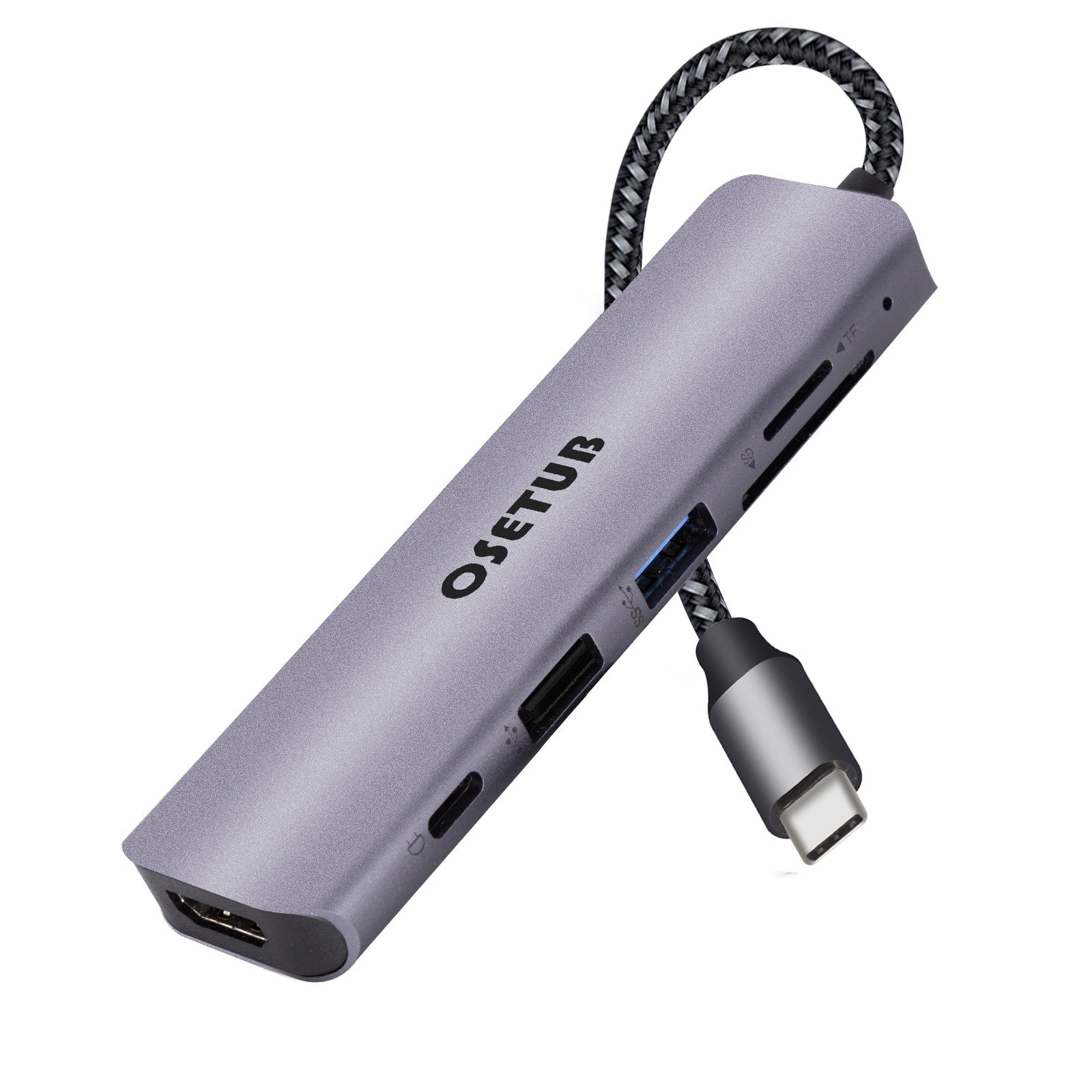 - 【6 in 1 USB C Hub】Our 6-in-1 USB-C hub adapter features a 4K High Definition output port, SD and TF card readers, USB 3.0 port, USB 2.0 port, 100W power delivery charging port(Max. 20V 5A ). All in One USB C hub docking station is the perfect companion for your USB C laptops/ phones. Plug & play, no additional driver needed.