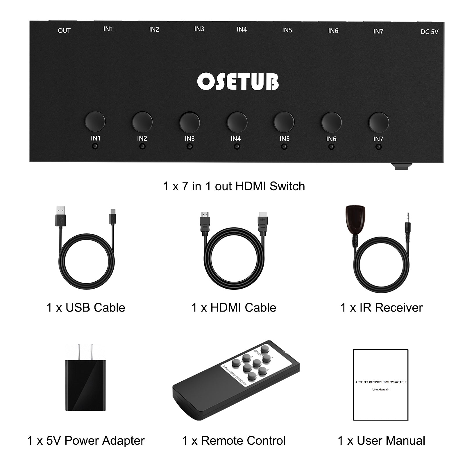 【4K Ultra-HD Experience】OseTub 7 in 1 out HDMI Switch support bandwidth 18Gps/600MHZ, HDCP 2.2, HDR 10 Dolby Vision, 4Kx2K@60HZ 4:4:4 8-bit, FullHD, UHD, DeepColor to 36bit. Premium HDMI selector ensures stable and fast transmission of UHD video signals, and smooth picture switching, no delay, no distortion!