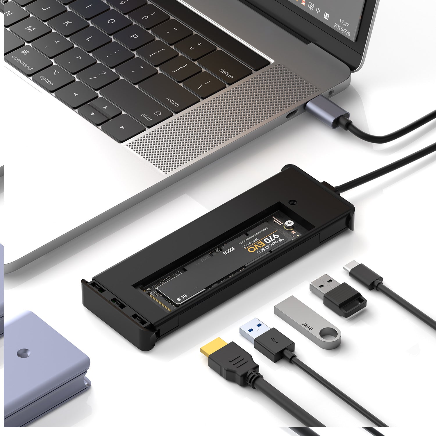 【6-in-1 USB-C Hub Combines M.2 NVMe SSD Enclosure】 The intelligent USB C hub adapter included 4K/60Hz HDMI port, 3 * 10Gbps USB 3.0 ports, 100W PD charging ports. Combines the M.2 NVMe SSD enclosure and multi-functional TYPE-C adapter compatible for MacBook, Type C laptop, Samsung Note10/S10, Huawei P60/Mate60.
