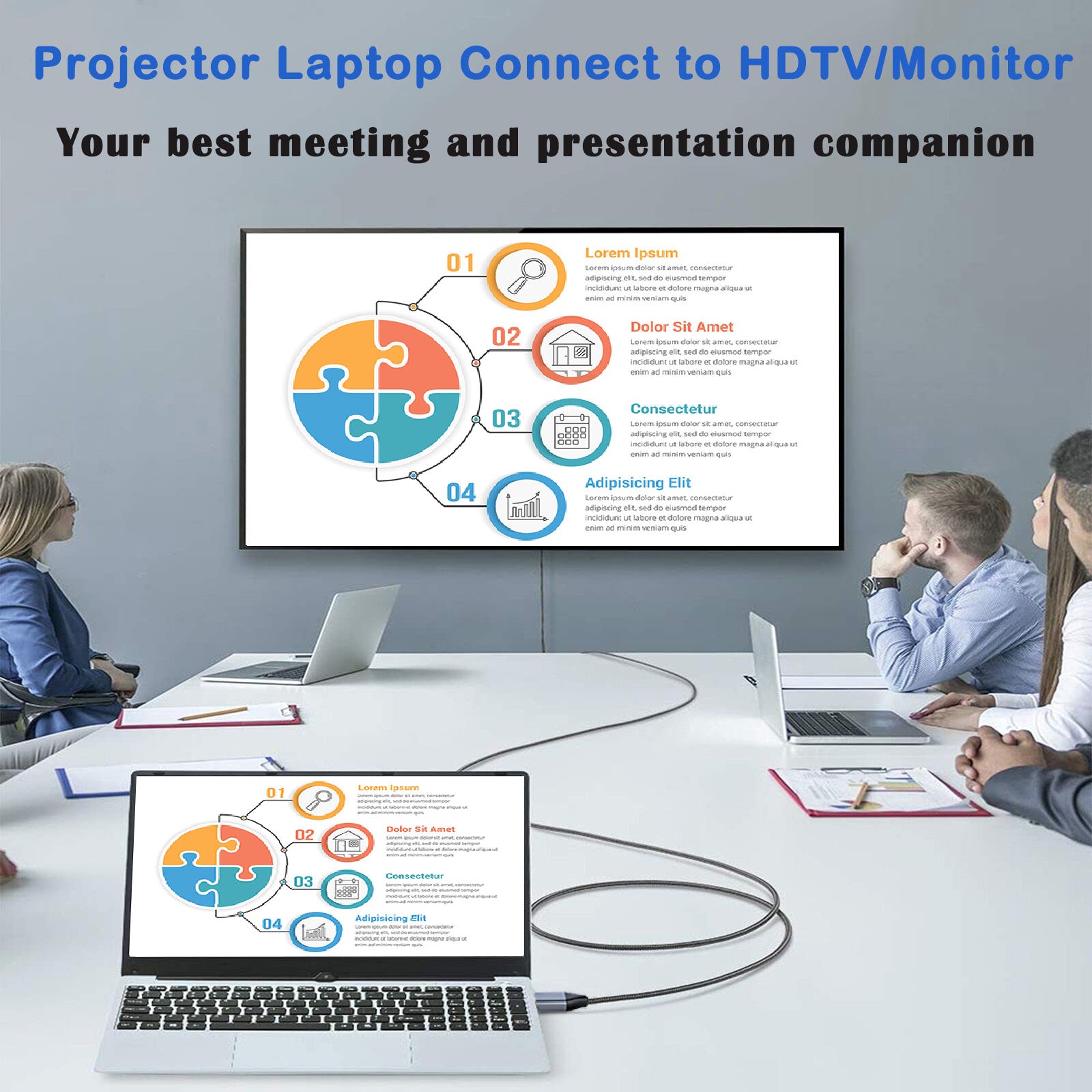- 【Sturdy & Long-Lasting Design】Our USB C to High Definition cable is made of aluminum alloy & durable braided nylon, sturdy aluminum alloy casing and tangle-free, braided-nylon jacket ensure better heat dissipation and durability, gold-plated connector is more resistant to signal interference than nickel, better heat dissipation, ensuring secure high-speed data transmission free from interference.