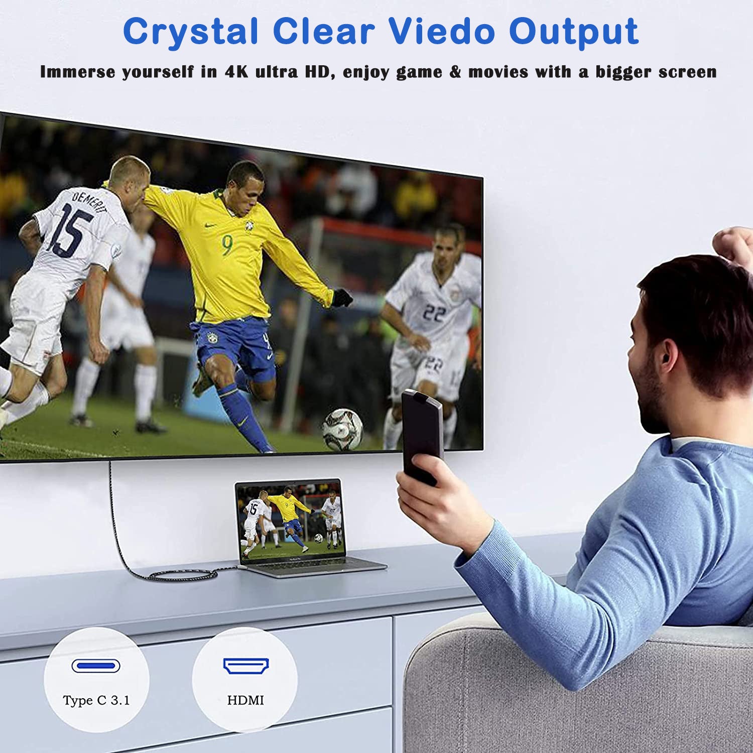 - 【USB-C to 4K High Definition Cable】This type-C to High Definition cable can stream from everywhere, perfect 10ft length for home office setup, stream sports events, watch movies, gaming, and show photos/albums directly from your devices and never miss the game-winning touchdown or your favorite TV episodes. High Definition supports resolutions up to 4K and makes multi-monitor displays a breeze.